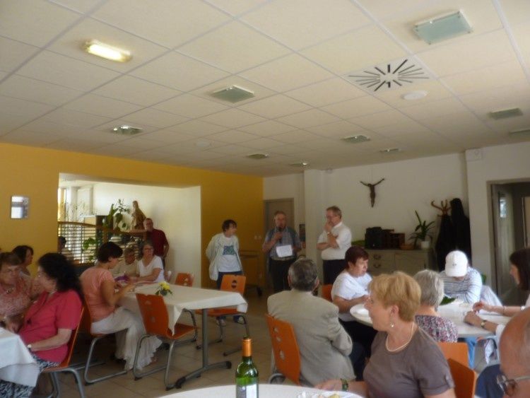 Le dimanche 14 juin 2015, la paroisse Notre Dame du Bourbonnais était en fête. La journée a commencé par l’Eucharistie à la cathédrale, suivie d’un après-midi festif convivial à la maison Saint Paul. Ce fut l'occasion de dire au revoir au Père Michel Pierron qui part en retraite. Les paroissiens de Moulins mais également ses amis de Vichy et de Commentry lui ont offert un bon pour une voiture. L'itinéraire se poursuivra donc en septembre sur le bassin de Vichy où le Père Pierron s'occupera de la pastorale de la santé et aides diverses. Longue route à lui !