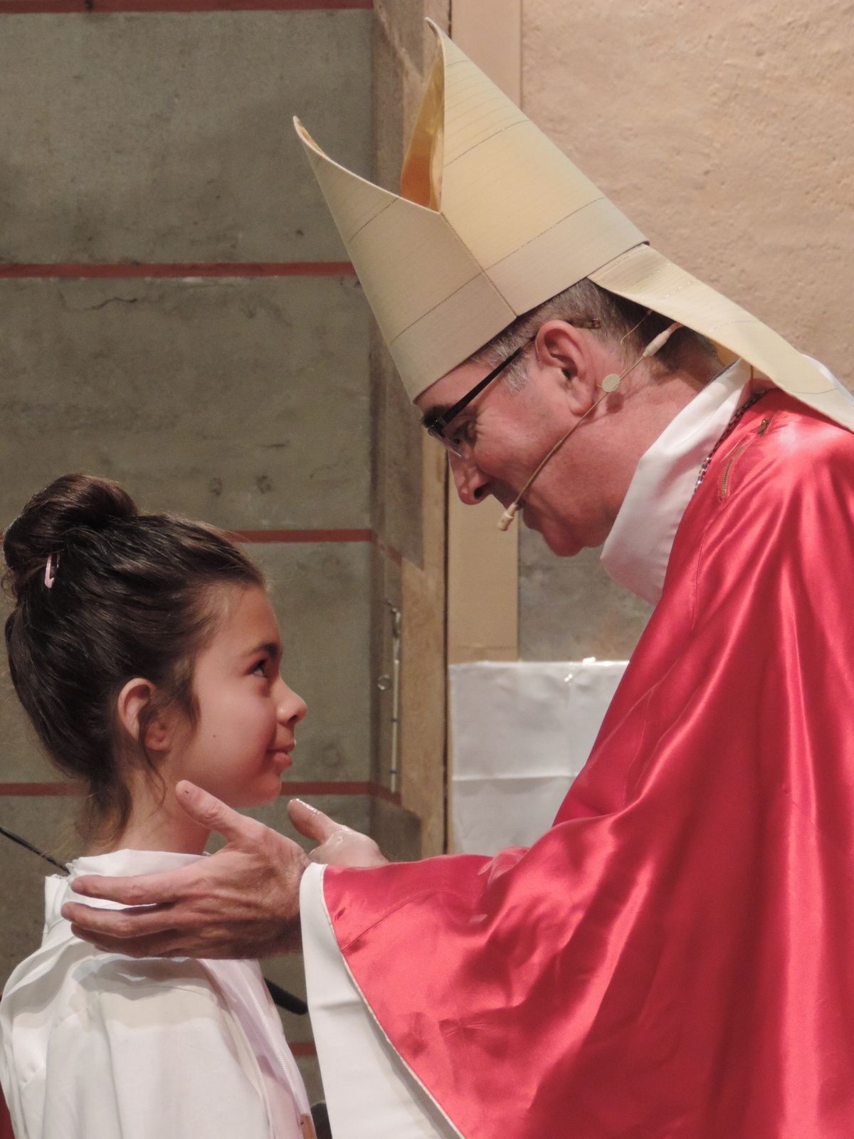 Chacun a reçu le don de l’Esprit-Saint lorsque l’évêque a tracé, avec le Saint Chrême, une croix sur le front en disant « soit marqué de l’Esprit-Saint, le don de Dieu. »